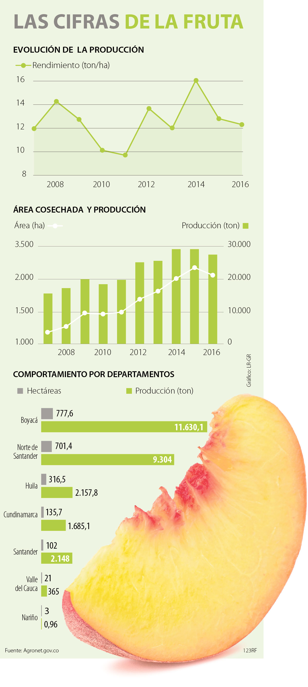 Con esas características, los cultivadores de durazno locales han apostado por regiones como Boyacá, donde se concentra 42% de su producción en todo el territorio nacional, el más alto porcentaje de todos los productores del país.