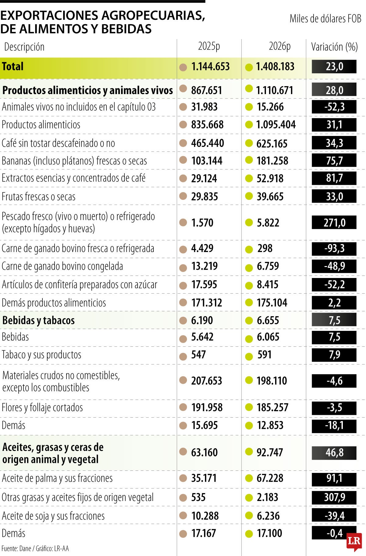 Las exportaciones colombianas iniciaron 2026 con resultados positivos. Según el Dane, en enero las ventas externas alcanzaron US$4.252,7 millones FOB, lo que representó un crecimiento de 12,6% frente al mismo mes de 2025, impulsado principalmente por el dinamismo del oro y algunos productos del agro.