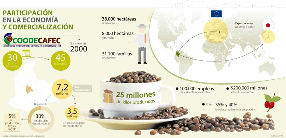 Esta estrategia cuyo fin último es alcanzar una mayor productividad y conseguir para los agricultores un ingreso por encima del promedio es liderada directamente por la Cooperativa Departamental Cafetera de Cundinamarca (Coodecafec), que ha vivido de cerca la evolución de la actividad y se ha venido fortaleciendo para tener presencia en toda la cadena.