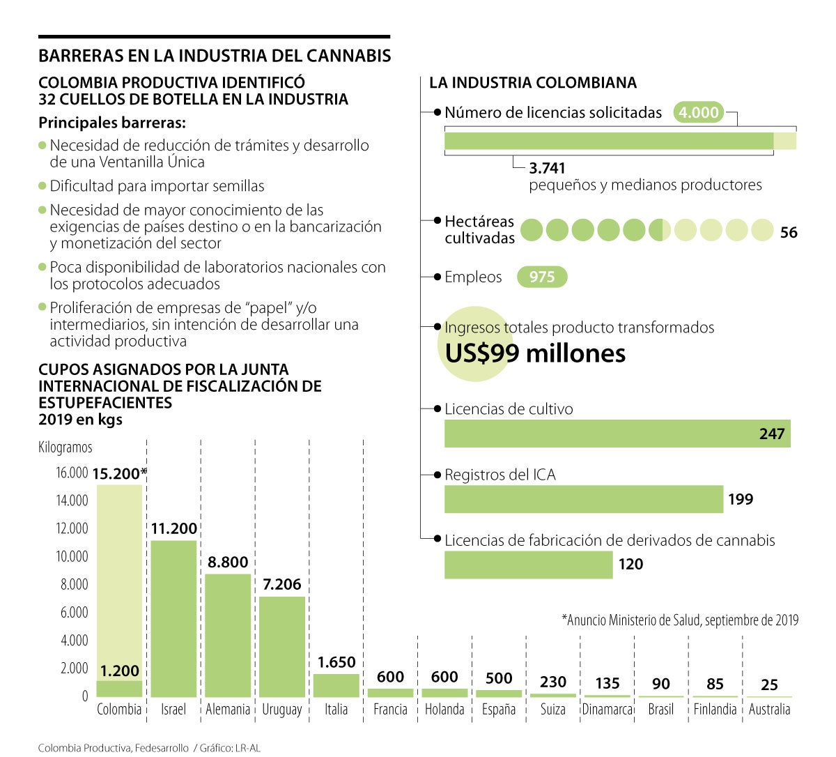 Otros cuellos de botella que identificó el estudio fueron la falta de armonización y homologación de requisitos sanitarios con otros países; la dificultad de acceso a la bancarización y monetización del sector; la falta de claridad en los conceptos tributarios aplicables y el eslabón de la cadena al que se aplica, y la poca disponibilidad de laboratorios nacionales con los protocolos adecuados para la industria. Frente a este punto, el Gobierno aseguró que está trabajando en acreditar más laboratorios para prestar estos servicios.