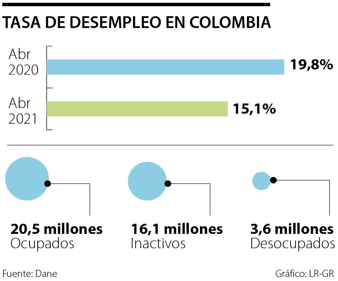 Cabe resaltar que en los cuatro primeros meses de año, la tasa de desempleo de la población joven, según el Dane, se ubicó en 23,1%, con un total de 1,57 millones de personas, entre 14 y 28 años, desocupadas. De este grupo, 196.000 jóvenes pertenecen a centros poblados y rurales dispersos.