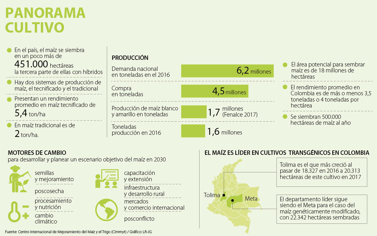 Por otro lado, el investigador del Cimmyt, dijo que Colombia es uno de los pocos países en el mundo que puede incrementar su producción de maíz relativamente fácil, con mayor tecnología y ganando áreas nuevas.