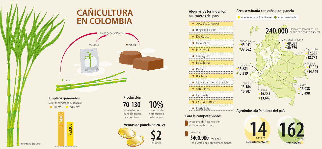 De esos niveles, el 10%, llega a transformarse en panela, lo cual hace que la producción del producto sea entre 7 y 13 toneladas por hectárea.