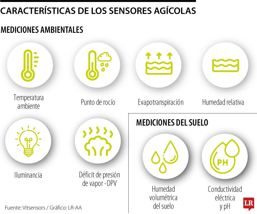 Hoy, este tipo de tecnología permite una lectura completa del sistema productivo. No se trata únicamente de saber si el suelo está húmedo o seco sino de comprender cómo es la interacción entre el ambiente, el suelo y la planta al mismo tiempo. De acuerdo con Jonathan Díaz, CEO de Vitsensors, actualmente existen sensores capaces de medir variables clave como temperatura ambiente, humedad relativa, radiación solar, temperatura del suelo, conductividad eléctrica y pH, así como indicadores fisiológicos de la planta, entre ellos la temperatura de la hoja y estimaciones de evapotranspiración.