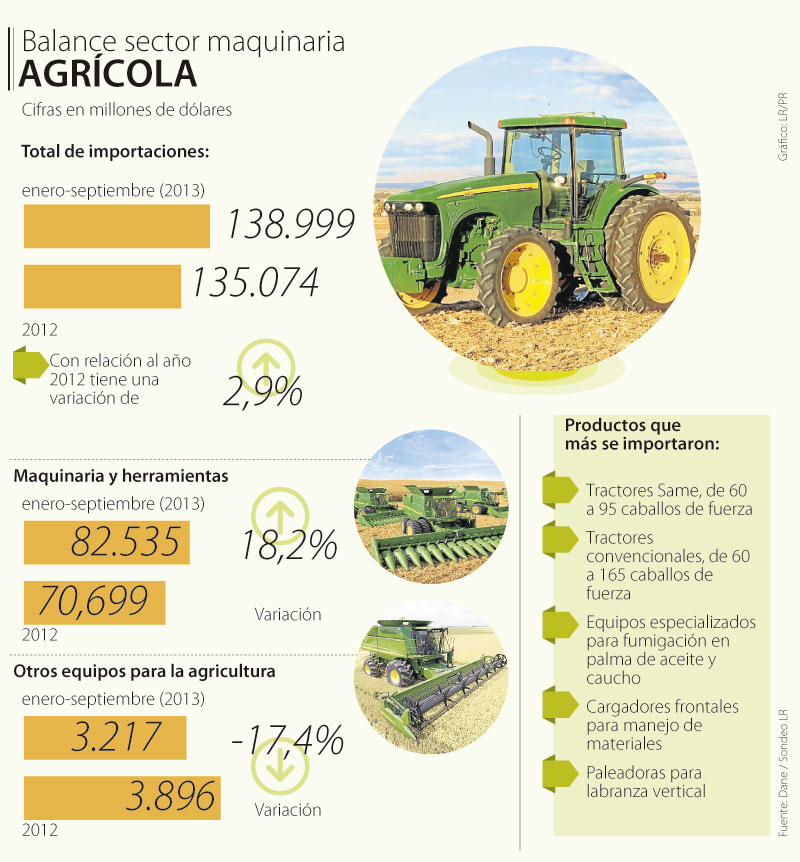 Este año en el periodo enero-septiembre la importación de maquinaria agrícola llegó a los US$138.999 millones, US$3 millones más que el total registrado en 2012 cuando las compras externas sumaron US$135,074 millones.