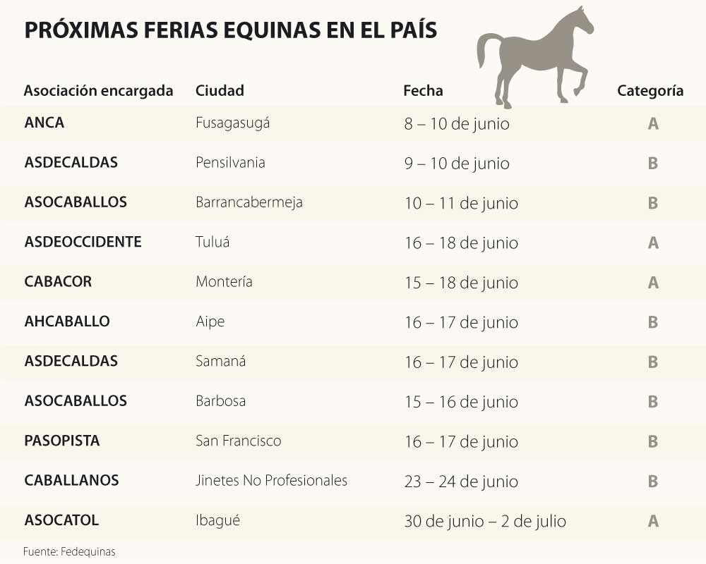 La Federación Nacional Colombiana de Asociaciones Equinas (Fedequinas), resaltó la oportunidad que ofrecen las ferias para abrir puertas que permitan expandir la industria y la economía colombiana.
