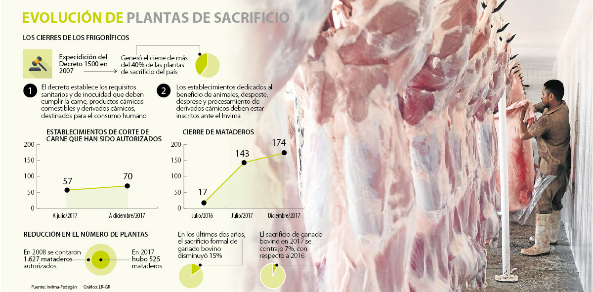 Entre tanto, Javier Guzmán, director del Instituto Nacional de Vigilancia de Medicamentos y Alimentos (Invima) manifestó que, “tener hoy la tercera parte de los centros que teníamos, se debe a que se cuenta con menos, pero mejores plantas de procesamiento”. Con el número actual de mataderos, se estaría llegando a la cantidad esperada por las autoridades, gracias a los correctivos que se han tomado.