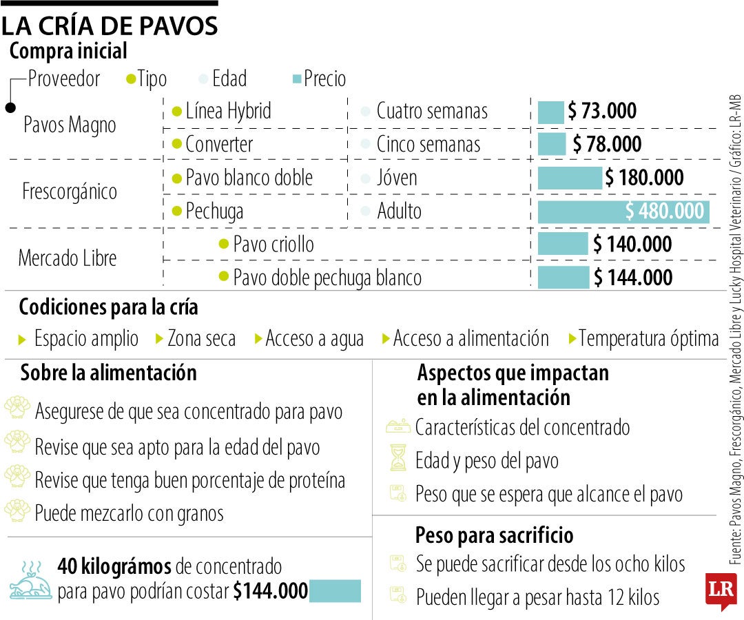 Si se parte de la compra del ejemplar, aspectos a tener en cuenta pueden empezar desde el peso y la edad del animal. En Colombia, existen varios puntos de venta, de los cuales, solo para tener una visión del mercado, se pueden considerar Pavos Magno, Frescorgánico y Mercado Libre.