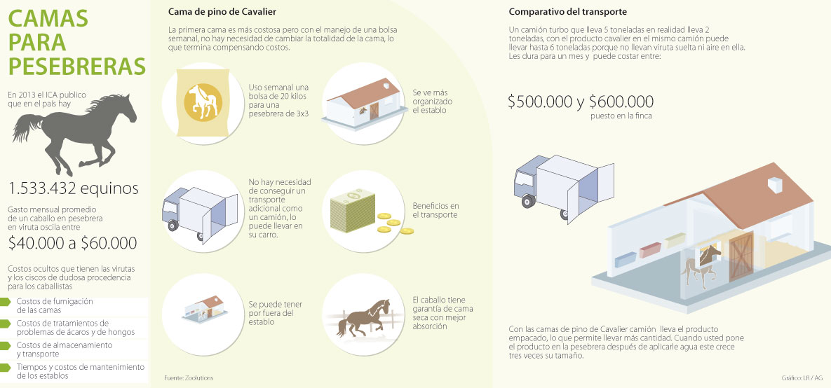 Lo que hacen estos emprendedores es sustituir la viruta tradicional, por un componente extraído del pino. La inversión inicial, sí es en términos generales, un poco más alta debido a que cada bulto trae 20 kilogramos por lo que necesitará, varios de ellos dependiendo el tamaño de la pesebrera.