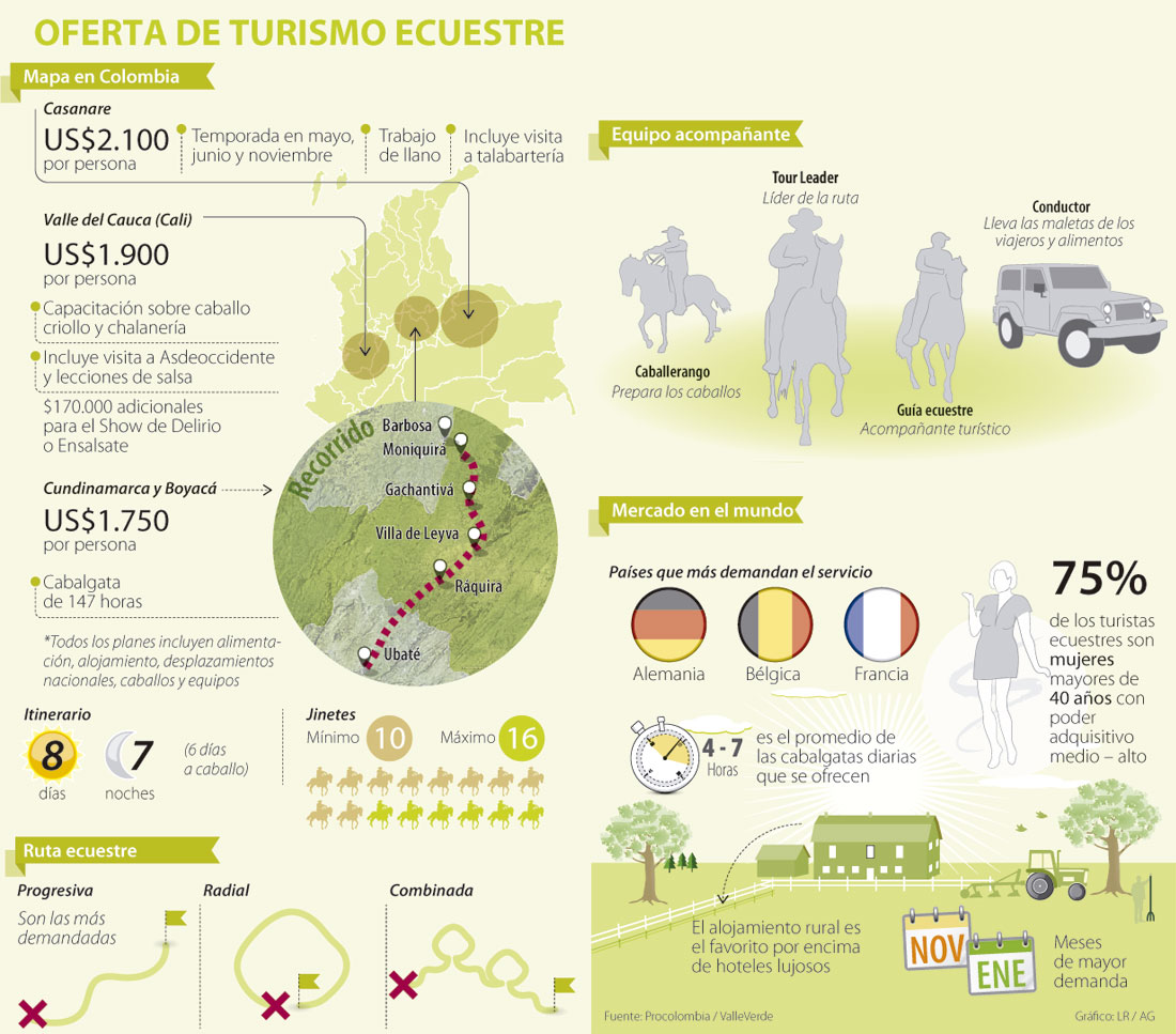 Este año hemos tenido grupos de Estados Unidos, Europa, México y Brasil, además tenemos confirmados ocho grupos de 16 personas para lo que queda de 2015 y otros ocho para 2016. Es un negocio que sin duda va a crecer mucho, lo importante es que en Colombia suceda de forma adecuada para que en el exterior nos vean como un destino importante de turismo ecuestre.
