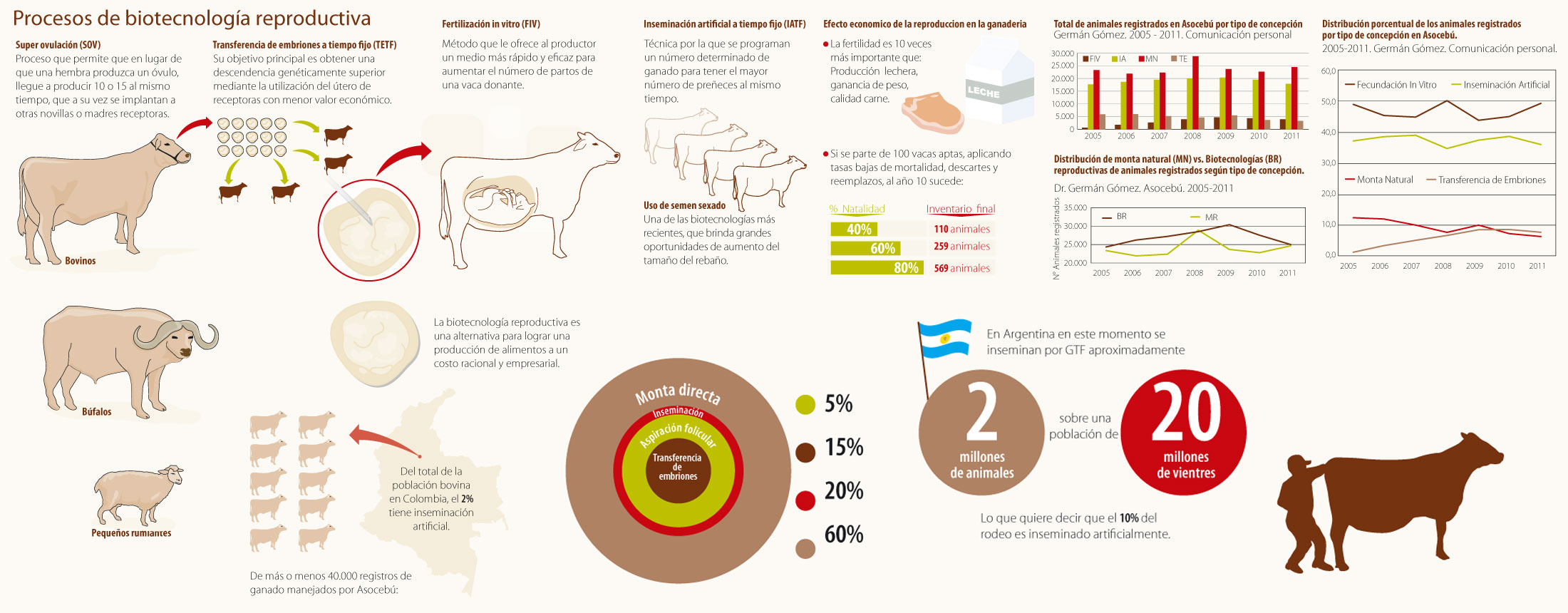 A pesar de que en materia biotecnológica el gremio ganadero ha crecido muy poco, al país han llegado distintos procesos, como la inseminación artificial, una de las técnicas más utilizadas, que de acuerdo con Hernando López, director de servicios técnicos de ABS, le permite a los productores una nueva forma para avanzar genéticamente mucho más rápido, así como la oportunidad de seleccionar los tipos de animales que quieren tener en el futuro en sus establos o fincas.