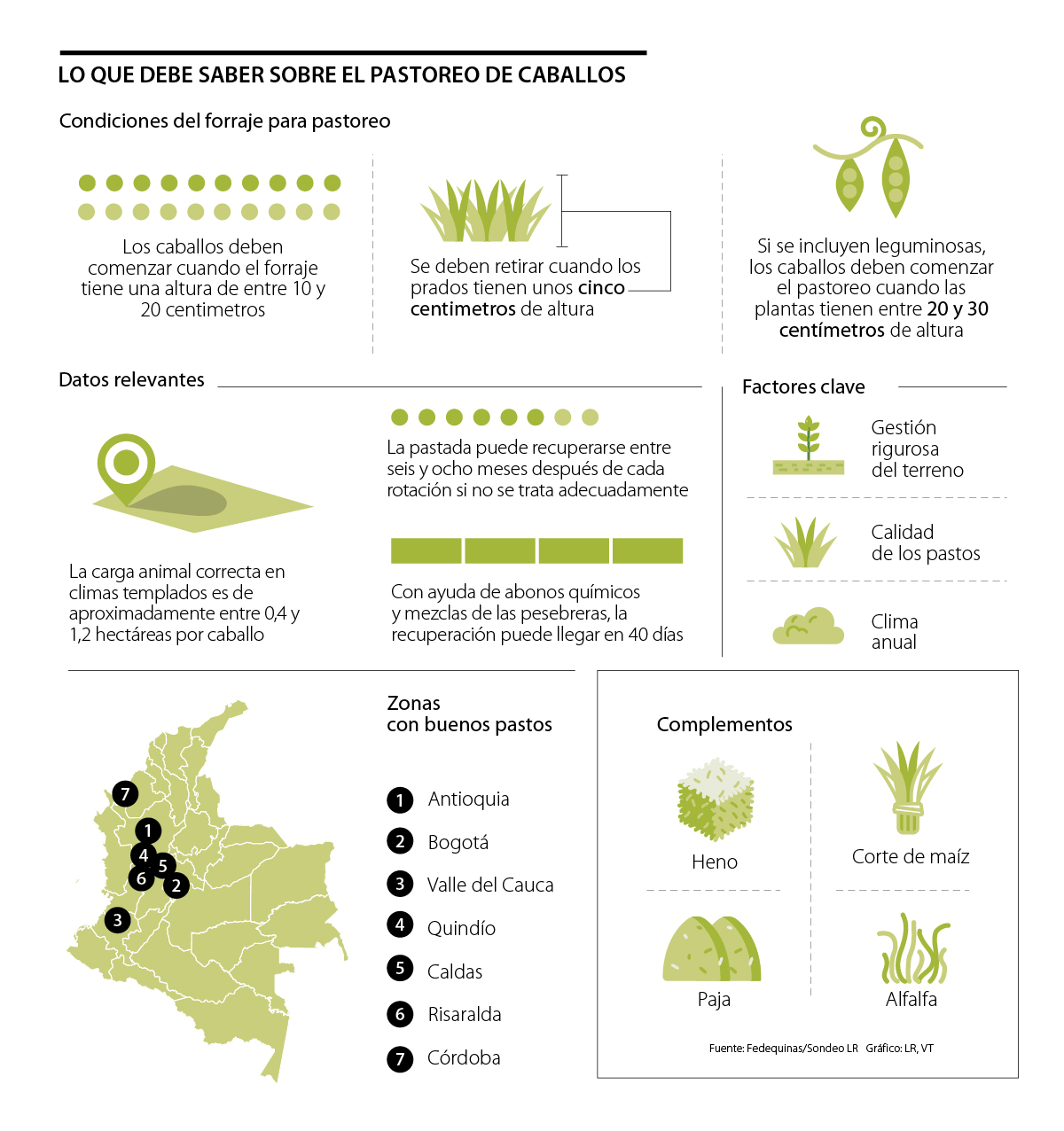 Según la directora ejecutiva de la Asociación Colombiana de Criadores de Caballos Árabes y jueza de la Federación Colombiana de Asociaciones Equinas (Fedequinas), Ángela Ochoa, todo depende del tipo de pasto y la calidad del suelo.