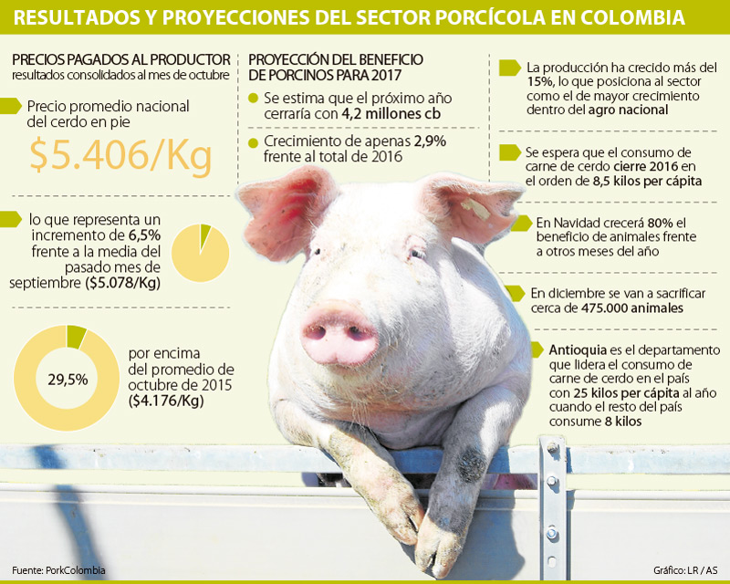 “Las festividades de Navidad y Año Nuevo traen un mayor consumo, generalmente es un poco más del doble del resto del año y ese es un gran reto para los productores. Para esta temporada hay muy buena oferta de carne de cerdo para las festividades de los colombianos”, dijo Maya.