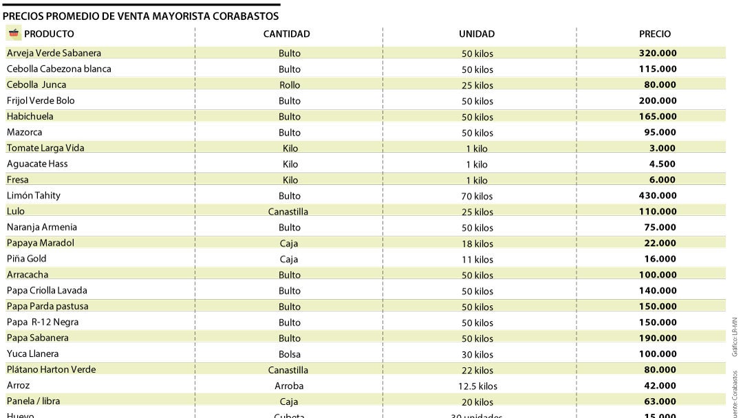 Recorrido por los precios de las centrales mayoristas