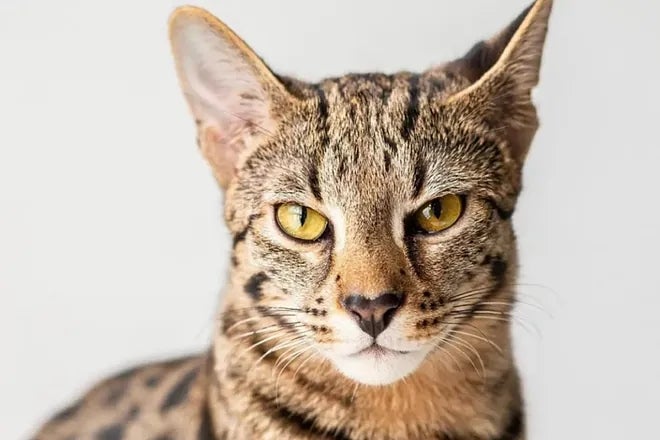 Aquí sí se entra en una raza reconocida por TICA (Asociación Internacional de Gatos) y con un perfil muy definido. Nació del cruce entre gato doméstico y serval africano, y conserva una silueta altísima, largas patas, grandes orejas y un manto moteado que explica parte de su magnetismo. También conserva una personalidad intensa: es activo, aventurero, inteligente y de altísima energía, de modo que no encaja bien en hogares sedentarios o poco estimulantes. Su precio habitual puede arrancar bastante más abajo, pero las generaciones más tempranas y cotizadas sitúan a la Savannah en la franja alta del mercado, con cifras en torno a US$35.317. A esa rareza se suma una advertencia importante: distintas organizaciones de bienestar felino han expresado reservas sobre la cría y tenencia de híbridos como mascotas.