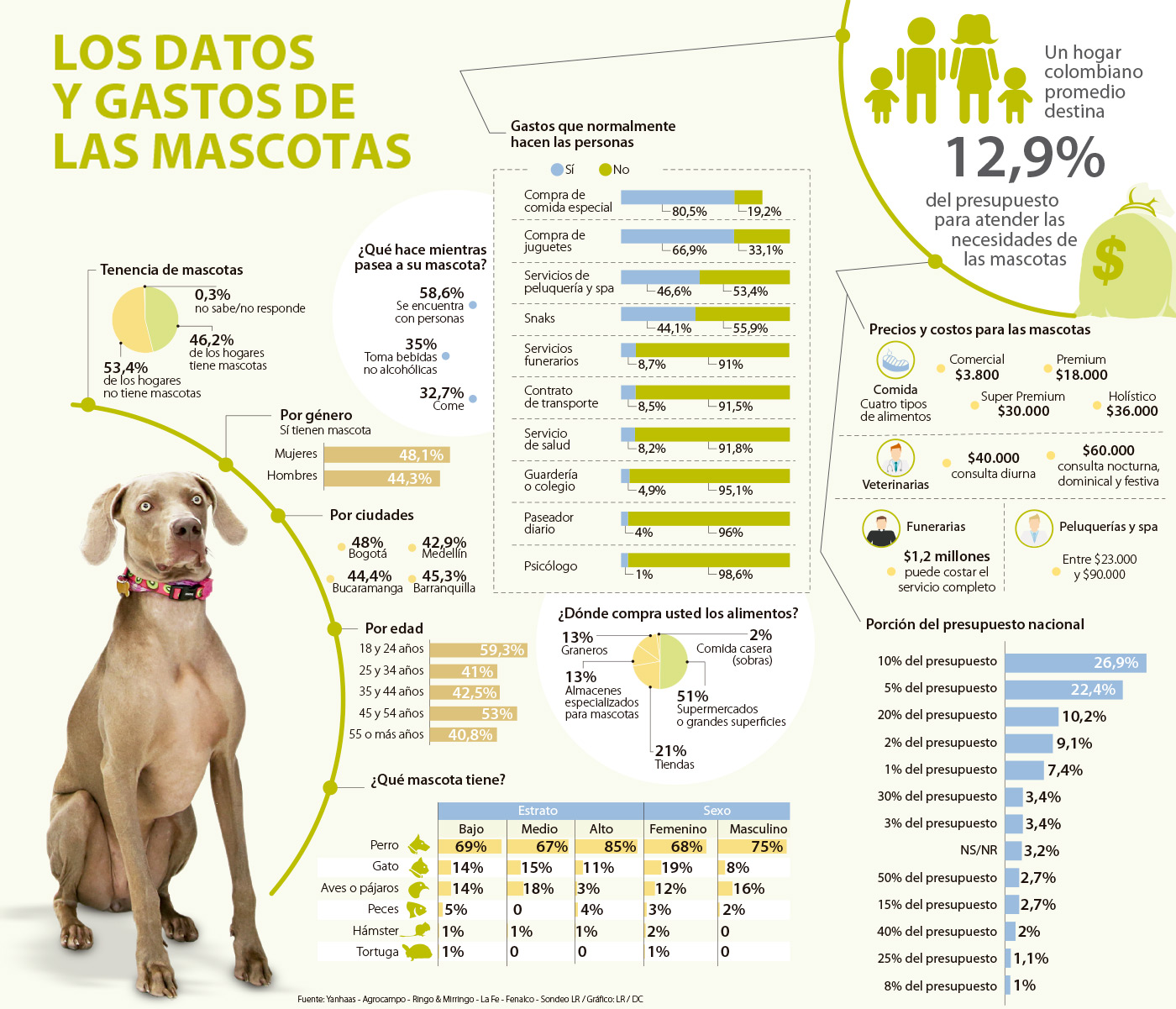 Según una encuesta de YanHaas S.A., en Colombia las personas llegan a destinar de su salario 12,9% en la compra de diferentes artículos para sus mascotas. Incluso, los más apasionados a los animales gastan hasta 50% del sueldo mensual.