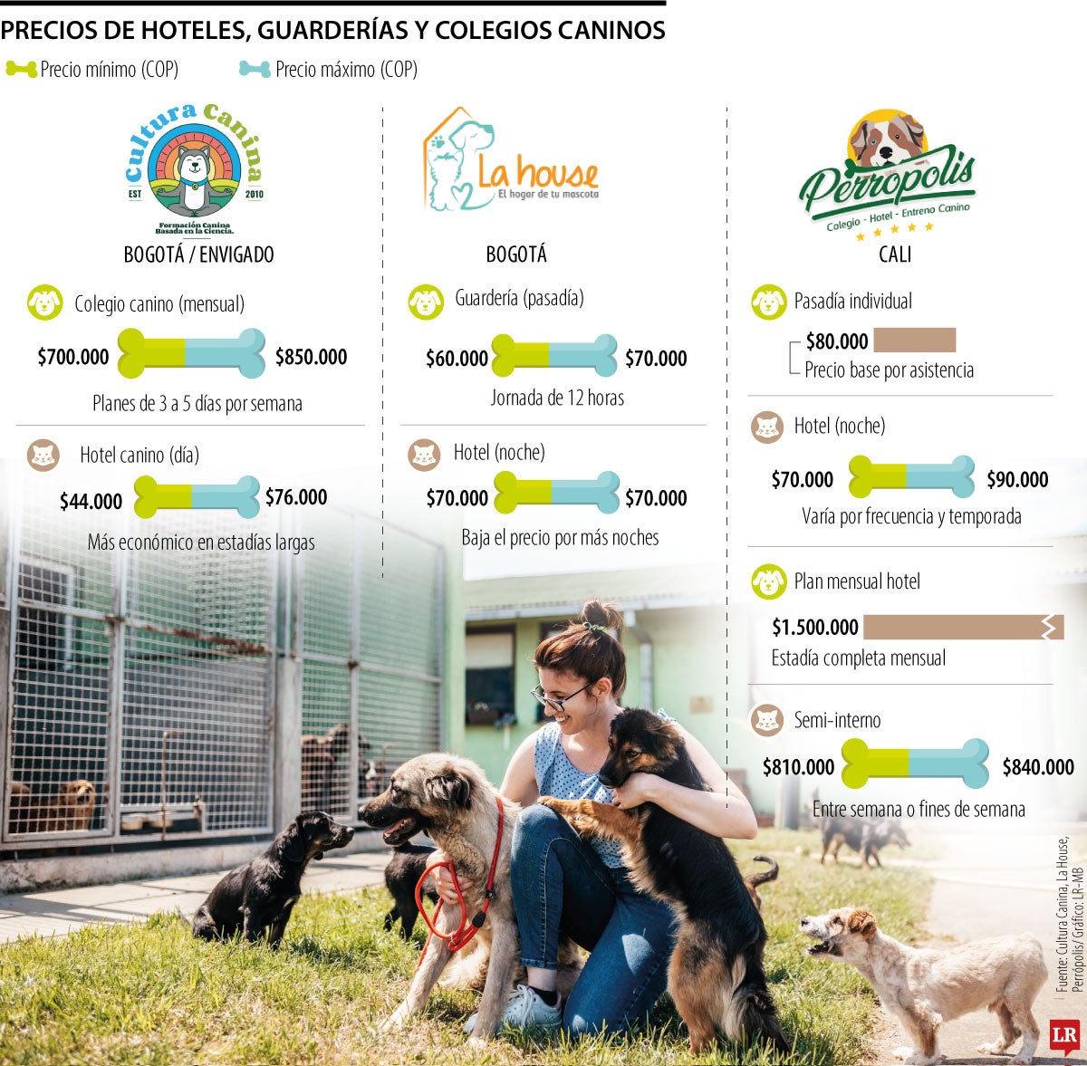 Los precios también varían según el servicio que se brinde y el tiempo de estadía: “La guardería diurna o pasa día está entre los $60.000 y $70.000 por día (12 horas). El hotel canino tiene un valor por noche (24 horas) está aproximadamente en $70.000 por noche, según el número de noches. Entre mayor sea el número de noches, es más económico el costo diario. El servicio de ruta: tiene un valor adicional dependiendo de la zona”, dijo.