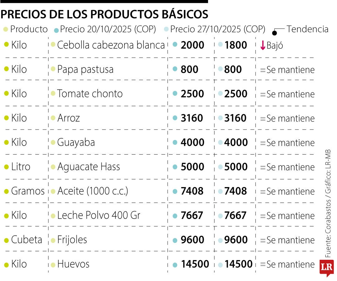 De acuerdo con el boletín diario de precios publicado por Corabastos, la central de abasto de Bogotá, publicado durante la mañana, estos son los alimentos que bajaron y mantuvieron estables sus precios para esta semana, del 27 al 31 de octubre.