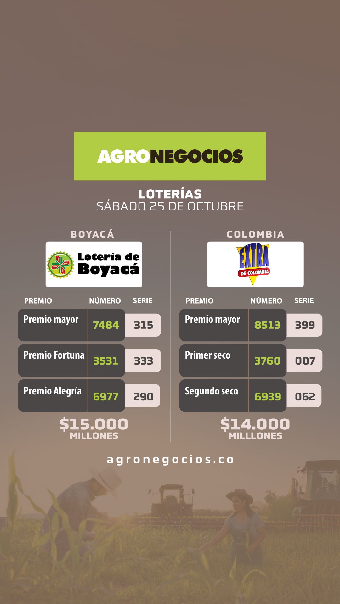 Durante la noche del sábado 25 de septiembre se realizaron los sorteos de la lotería de Boyacá, lotería Extra de Colombia y lotería del Cauca con premios mayores de $15.000, $14.000 y $8.000 millones. Además, contaron con secos de $1.000, $800, $500, $400, $300, $250, $200, $110, $100, $50, $20 y $10 millones.