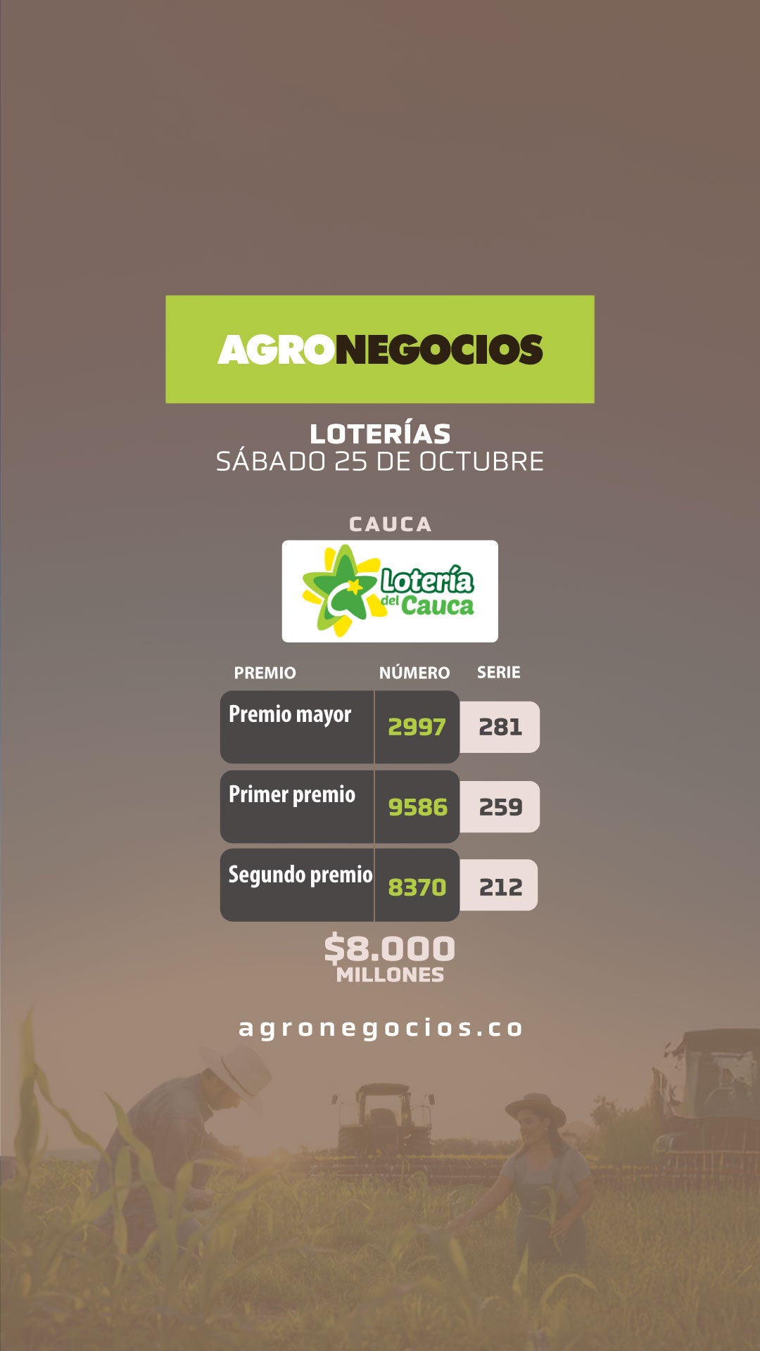 Por último, el número 2997 de la serie 281 fue el ganador del premio mayor, de $8.000 millones, del sorteo 2582 de la lotería del Cauca. Esto sin olvidar los secos de $300, $200, $100, $50 y $10 millones.