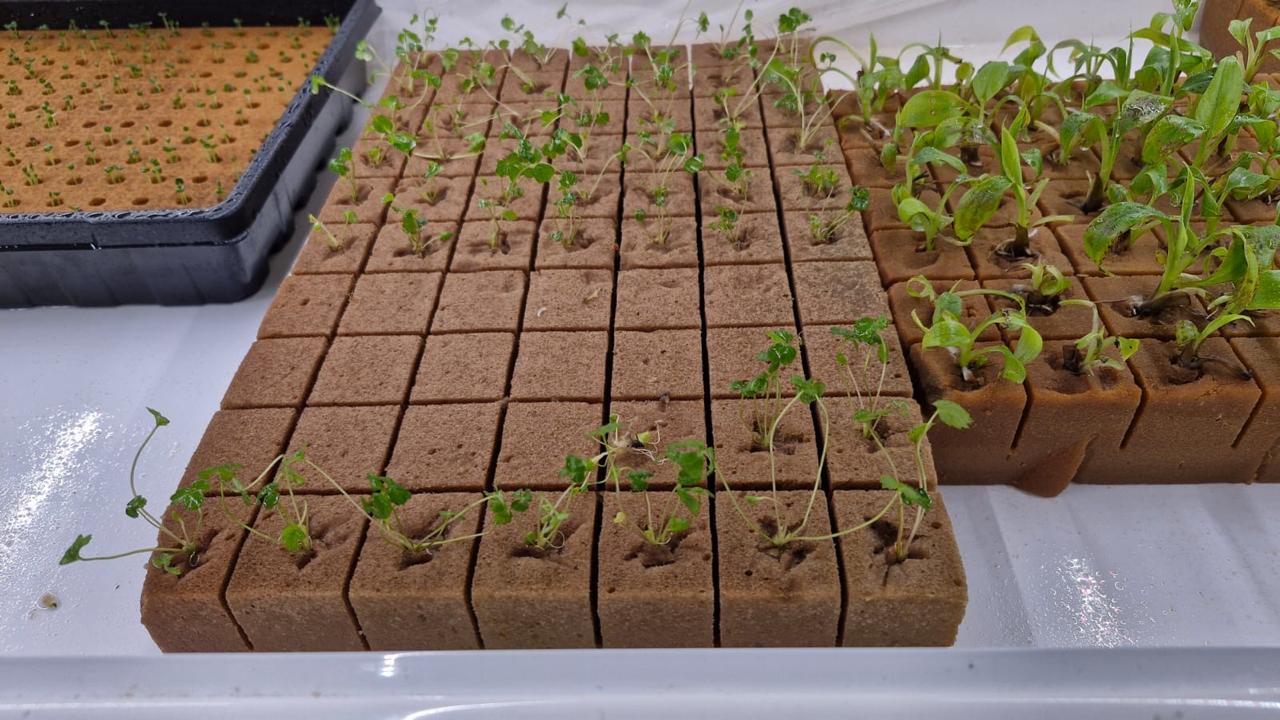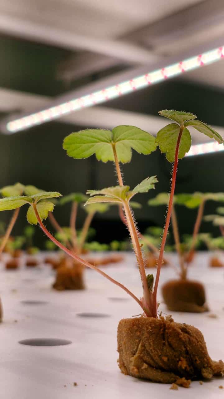 Tenemos unas variedades las cuales endurecemos, es decir, hacemos crecer la planta a una etapa en la cual ya se tiene para llevar a campo o, algunas variedades, las cosechamos. Entre estas están hojas verdes, hierbas aromáticas y frutas como la fresa, las cuales en nuestro sistema están durante toda la etapa de producción, pero también tenemos especies como banano, forestales, mora y arándanos que llevamos a campo. Las endurecemos y entregamos plantas élite.