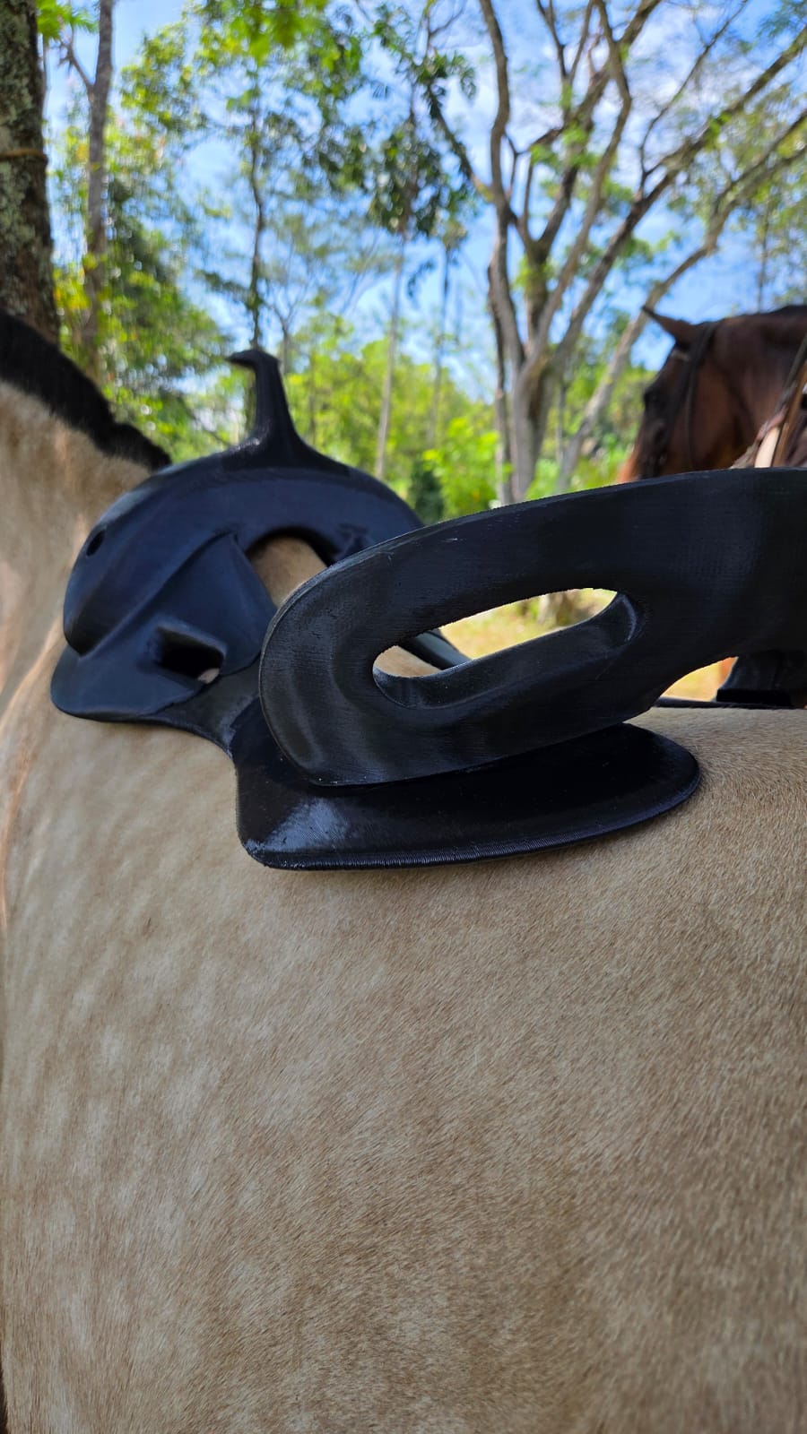 Creamos un dispositivo capaz de replicar la geometría exacta del lomo del caballo. Es como una plantilla de zapato personalizada. Con esa información podemos recomendar el fuste adecuado y evitar puntos de presión que generan dolor, peladuras o lesiones.
